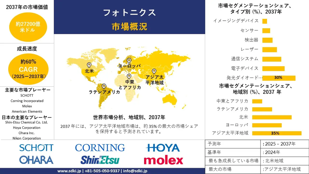 SDKI Analyticsは、日本、中国、米国、カナダ、英国、ドイツなど、様々な国の市場動向を明らかにすることを目指しています。多様なリサーチアナリストとコンサルタントのネットワークを通じて、SDKI Analyticsは、成長指標、課題、傾向、競合状況など、信頼性の高いリサーチインサイトを世界中のクライアントに提供することに尽力しています。9年以上にわたる豊富な業界経験と300,000時間を超える調査経験を持つSDKI Analyticsは、過去数年間で50カ国以上の顧客基盤から、最も有名でプロフェッショナルな市場調査および戦略コンサルティング会社の一つとして信頼を獲得してきました。